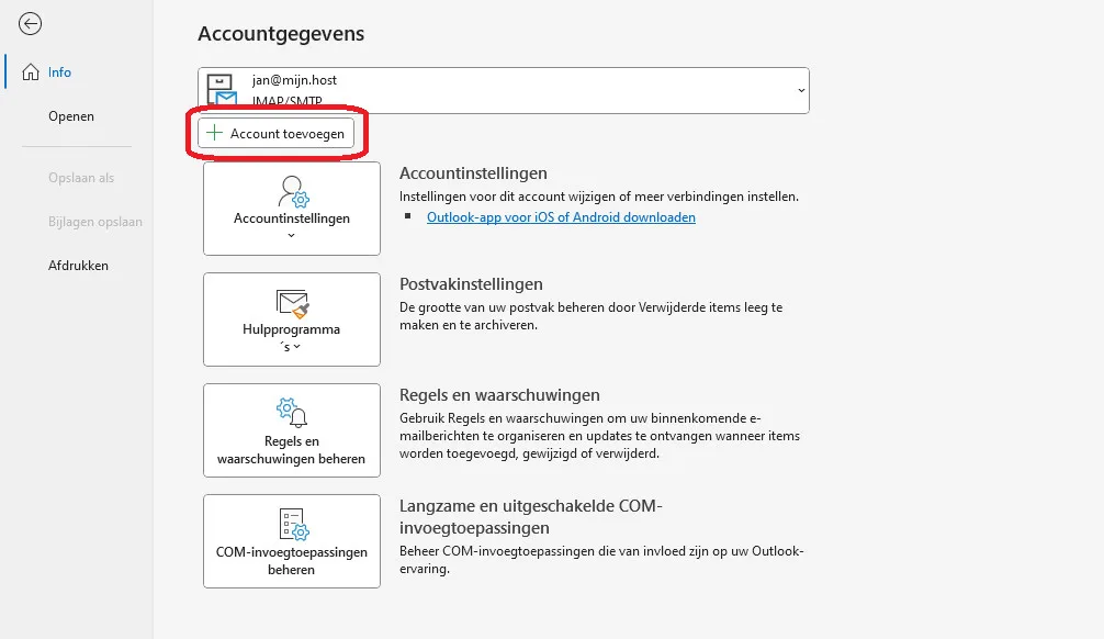 - Op de pagina die verschijnt, klik je op de knop ‘+ Account toevoegen’.