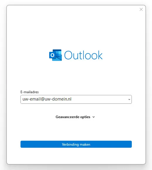 - Klik vervolgens op de knop ‘Volgende’. Vul je wachtwoord in en klik op ‘Verbinding maken’. Hiermee is je e-mailaccount succesvol toegevoegd aan Outlook.
